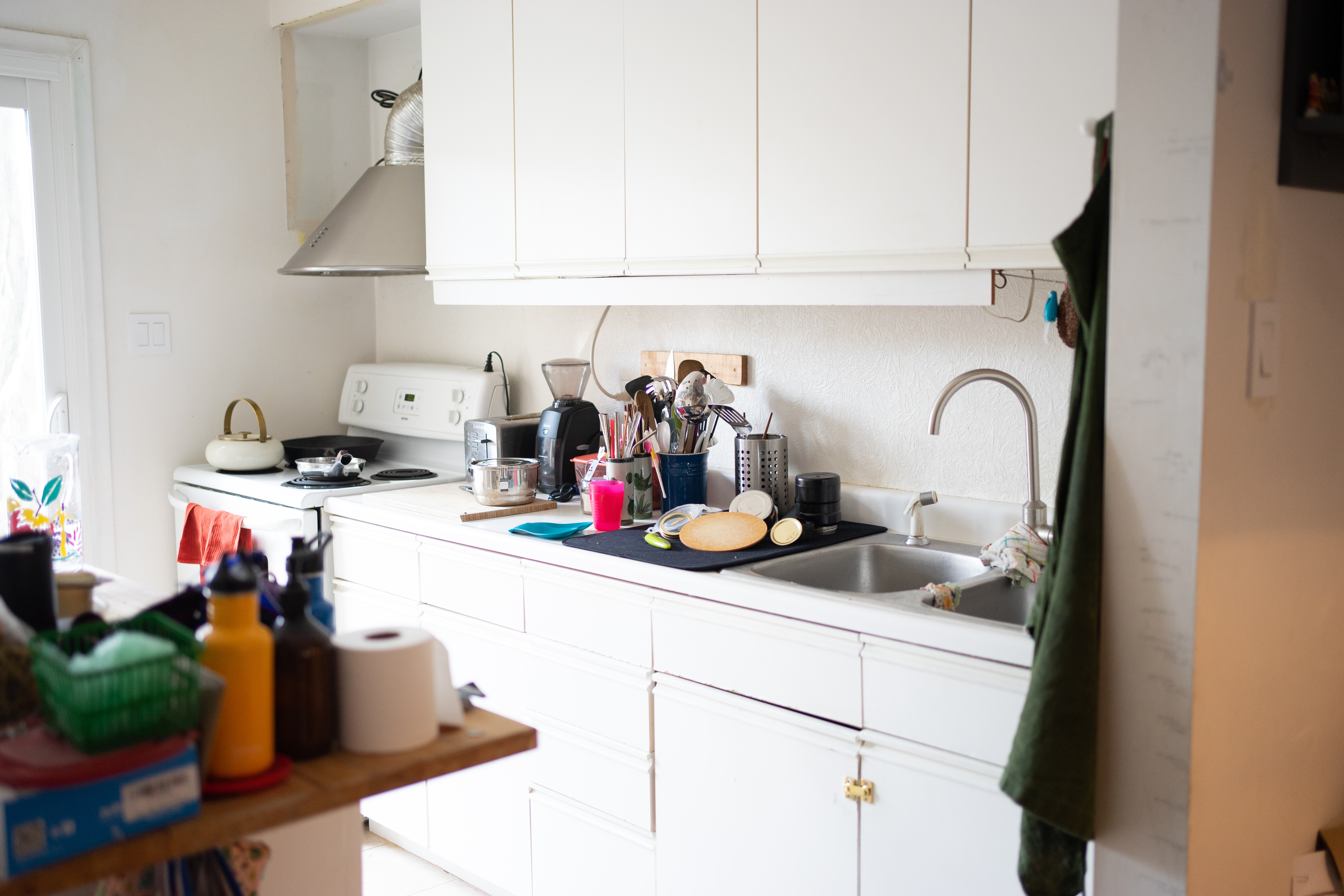 By keeping the original tile floors, upcycling an old butcherblock countertop on the salvaged center island, and choosing not to replace major appliances until absolutely necessary, this young family stayed true to their environmentally conscious values – waste not, want not!